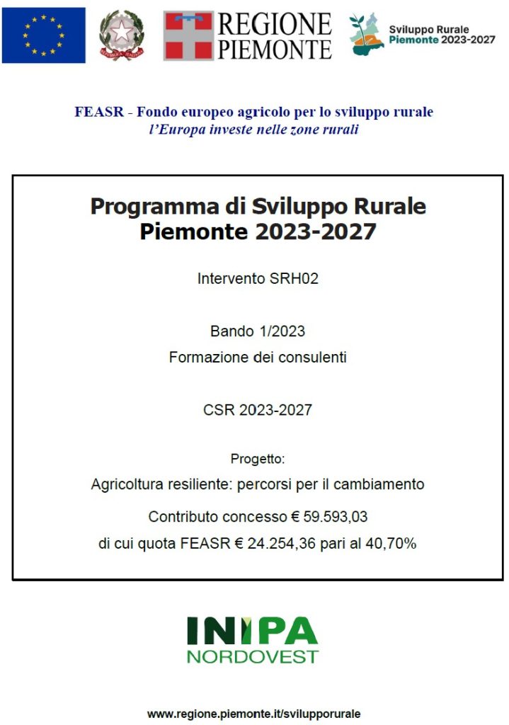 L’intervento nasce dalla volontà e dall’esigenza di offrire alle aziende agricole piemontesi dei servizi di consulenza adeguati e rispondenti alle nuove esigenze in campo agro-ambientale contribuendo a perseguire l’obiettivo di potenziare il sistema della conoscenza e del trasferimento dell’innovazione sul territorio piemontese usufruendo di contributi ai sensi del Regolamento Ue 2021/2115. Il programma formativo proposto vuole sostenere la preservazione dell’ambiente, focus centrale intorno al quale si è pensato di costruire il piano formativo in coerenza con l’obiettivo ambientale della PAC 2023/2027, ma anche con gli obiettivi economici e sociali osservati utilizzando la lente della sostenibilità. Il filo conduttore che attraversa il percorso formativo proposto è quello di formare dei consulenti in grado di sostenere e accompagnare le imprese in un processo di cambiamento che porti alla trasformazione dell’agricoltura tradizionale in un modello di agricoltura innovativa, esigenza fortemente sentita dalle stesse. Per tale motivo, la formazione e l’aggiornamento specifico proposto costituiscono una componente essenziale per garantire un servizio corrispondente alle attuali necessità e aspettative delle imprese di settore. Il progetto si articola, attraverso attività di formazione in presenza ed in FaD sincrona, con la realizzazione di corsi, seminari, sessioni pratiche ed una visita aziendale, in sei percorsi formativi:- PRATICHE SOSTENIBILI DI FERTILIZZAZIONE, CONSERVAZIONE E QUALITA’ DEL SUOLO;